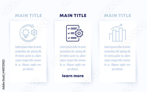 Vector set of vertical banners with start up, stabilization, achievement concept elements. Thin line flat design symbols, icons for website menu, print.