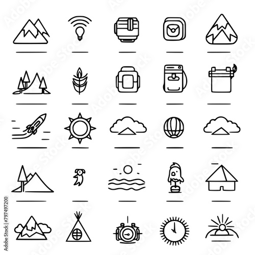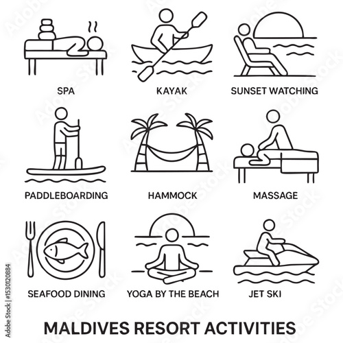 Vector set of summer holidays, cruise vacation, road trip, kayaking and surfing water sports activities vintage monochrome logos, emblems, labels and badges.