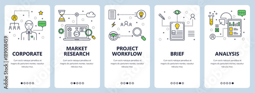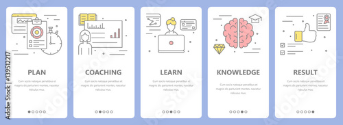 Vector set of commitment concept vertical banners. Observance, responsibility, trust, agreement and result concept elements. Thin line flat design symbols, icons for website menu, print.