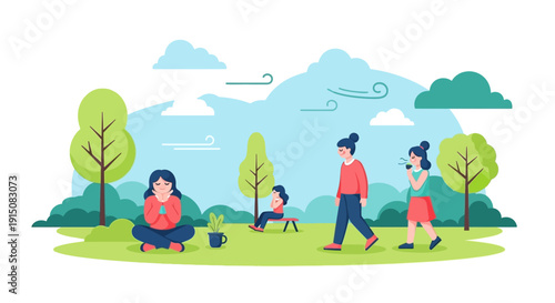 Vector illustration of travelers going hiking, camping. Tourist people symbols, icons isolated on white background. Flat style design.