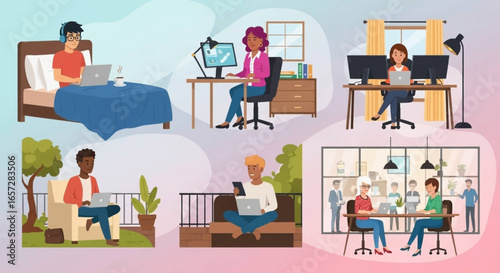 Vector illustration of travelers at airport terminal. Tourist people symbols, icons isolated on white background. Flat style design.