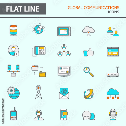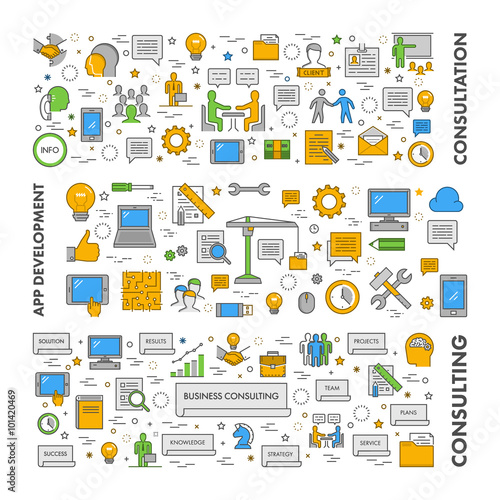 Vector set of web development and office icons in thin line style. Website UI and mobile web app icon. Outline design illustration
