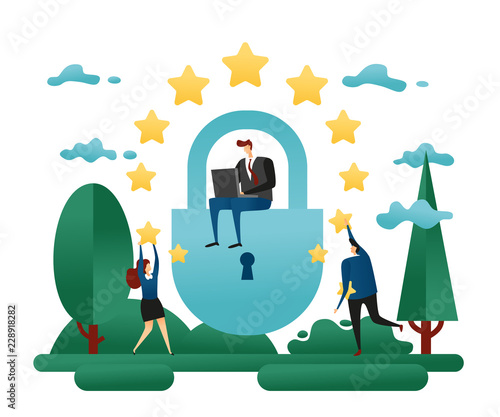 Vector set of wedding ceremony posters. Father and bride, Priest, Groom and Wedding dance flat style design elements.