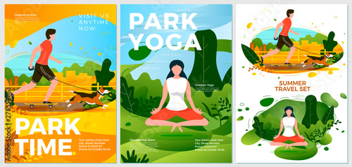 Vector set of winter fun posters. Ski instructor, Tubing, Vat and Gopro flat style design elements.