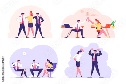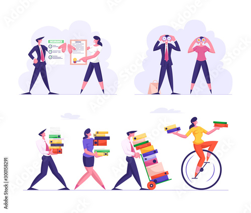 Vector set of winter time concept posters, banners. Snowdrifts, Making snow angel, Winter walk and Sledding design elements in flat style.