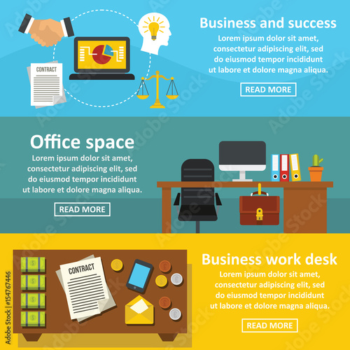 Vector set of working horizontal banners. Public works, Delivery of furniture and Repair in the kitchen flat style design elements.