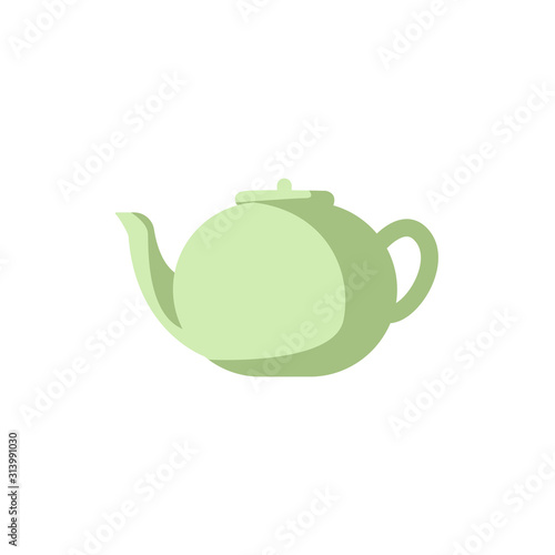Vector tea pot icon with woman silhouette harvesting herbs, gathering green plant leaves on plantation. Advertising logo, abstract label design isolated on white background