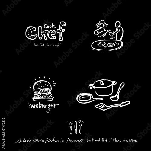 Vector tea set with handwritten inspirational and funny tea quotes and sayings. Vintage creative white on chalkboard typography design for tea room and print.