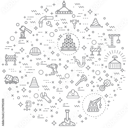 Archaeology advertising poster banner template. Vector thin line art flat style design elements, icons for web banners and printed materials.