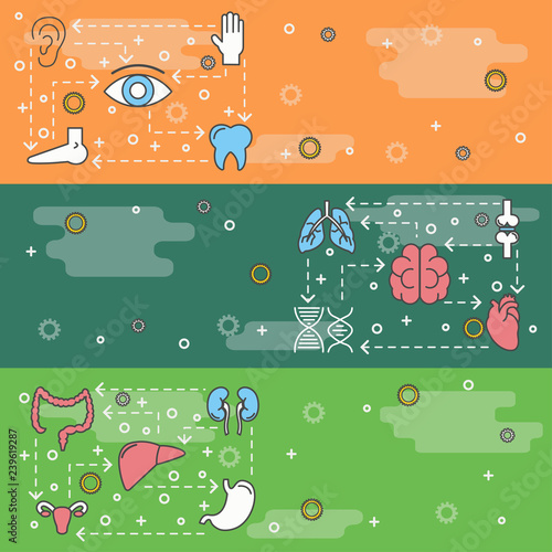 Barbeque vector web banner template set. Bbq grilled meat, fish, sauce, chili, beer and grilling equipment thin line art flat style design elements, icons.