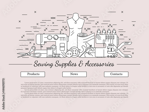 Bicycle poster banner template. Bike, exercise bicycle, race cycling gear and clothing. Vector thin line art flat style design elements, icons for website banner and printed materials