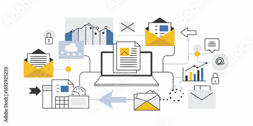 Business poster banner template. Business vector thin line art flat style design elements, icons for web banners and printed materials.