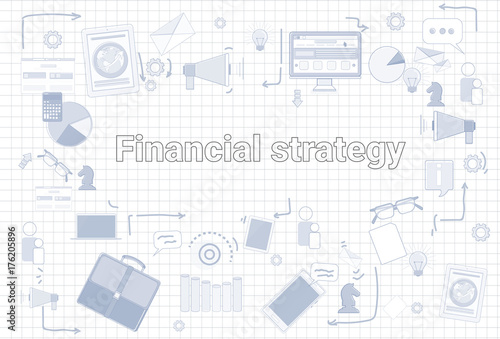 Business advertising poster banner template. Folders, briefcase, safe, achievement, time management etc. vector thin line art flat style design elements, icons for web banners and printed materials.