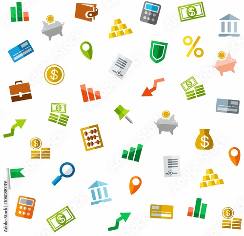Vector seamless pattern with folders, briefcase, safe, achievement, time management and other symbols. Thin line art flat style design business background, wallpaper.