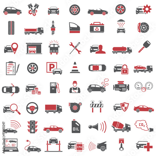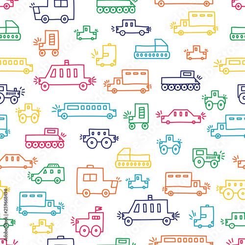 Vector seamless pattern with car service, auto shop repair and maintenance symbols. Thin line art flat style design auto service background, wallpaper.