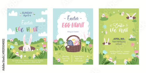 Happy Easter vector web banner template set. Celebration, Rituals and Easter concept thin line art flat style design elements.