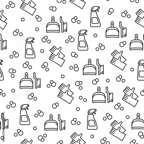 Vector seamless pattern with rubber boat, hat bag boot hook tackle bobber rod bait etc. Fisherman clothing, fishing gear and equipment. Thin line art flat style design fishing background, wallpaper.