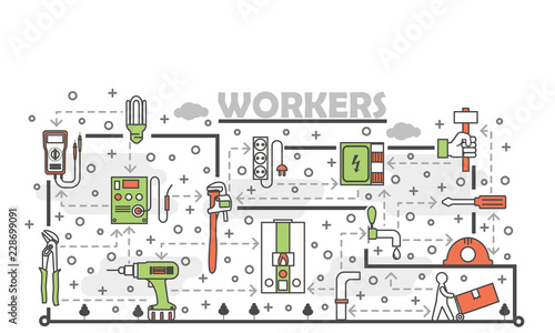 Hotel poster banner template. Vector thin line art flat style design elements, icons for web banners and printed materials.