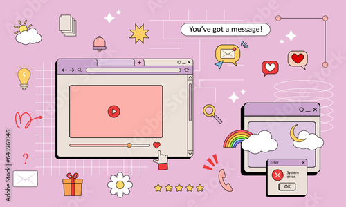 Housing vector web banner template set. House interior with furniture, garage, auto, bike thin line art flat style design elements, icons, copy space.