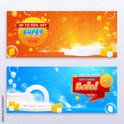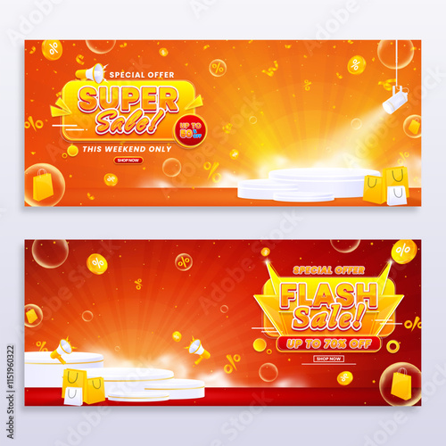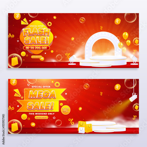 Hunter vector web banner template set. Hunting duck, deer, hare equipment and accessories thin line art flat style design icons.