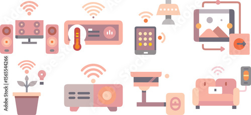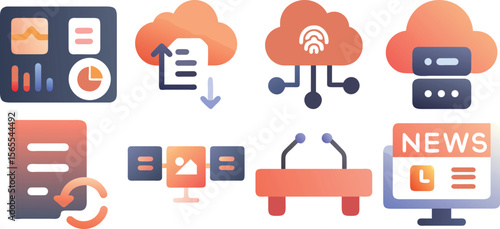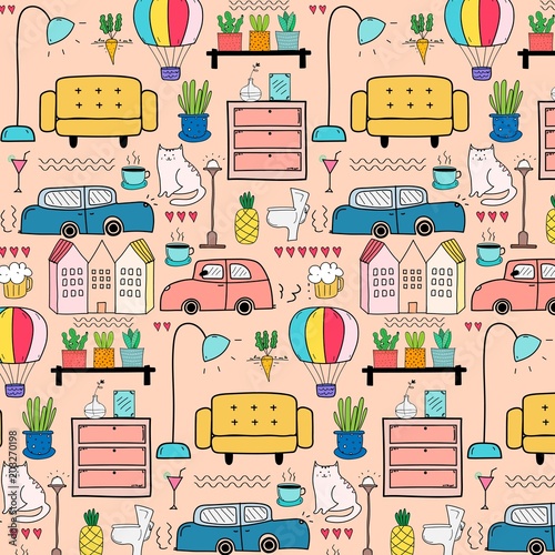 Vector seamless pattern with programming, computer science symbols, design elements. Thin line art flat style design information technology background, wallpaper.