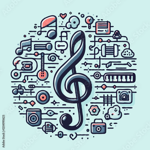 Vinyl record shape poster banner template. Music and sound vector thin line art flat style design elements, icons for web banners and printed materials.