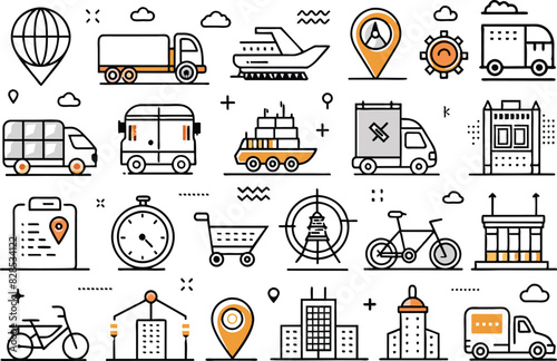 Vector seamless pattern with pirate hat ship treasure chest flag rum barrel spyglass, skull and bones, map parrot, steering wheel, hook etc. Thin line art flat style design pirate background wallpaper