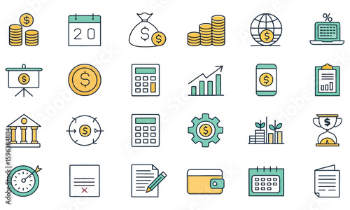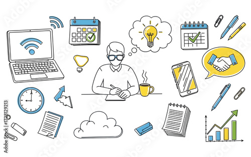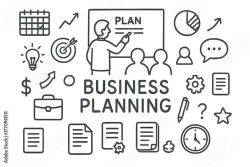 Vector seamless pattern with business vision, strategy, creative idea, inspiration concept symbols. Thin line art flat style design business planning background, wallpaper.