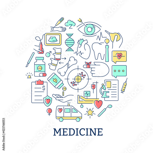 Audio disc shape vector poster banner template. Radio station music news broadcasting. Thin line art flat icons for web banners, printed materials.