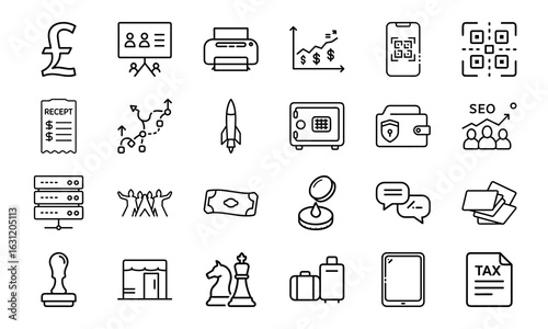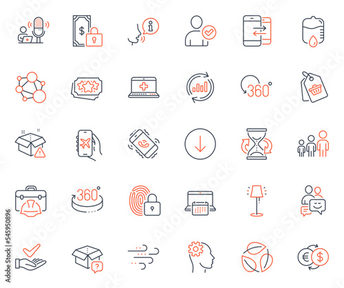 Vector seamless pattern with information security, data protection symbols. Thin line art flat style design security background, wallpaper.