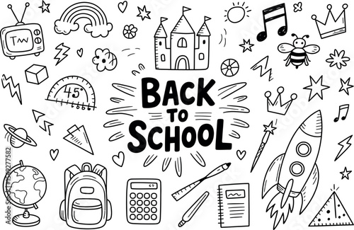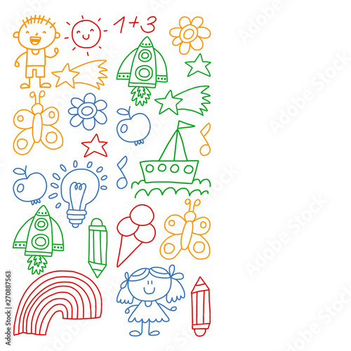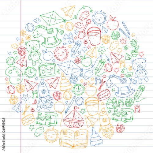 Sun shaped poster banner template. Spring flowers, gardening tools and clothes, other spring symbols. Vector thin line art flat style design elements, icons for website banners and printed materials.