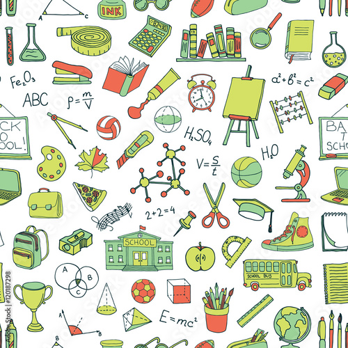 Vector seamless pattern with sewing machine, needle, thread, thimble, dummy, knitting, other sewing items. Thin line art flat style design tailoring background, wallpaper.