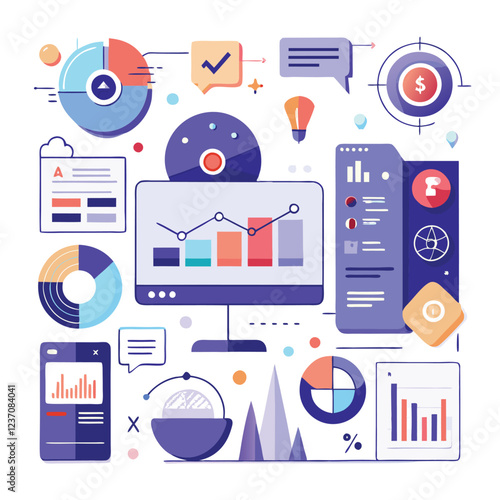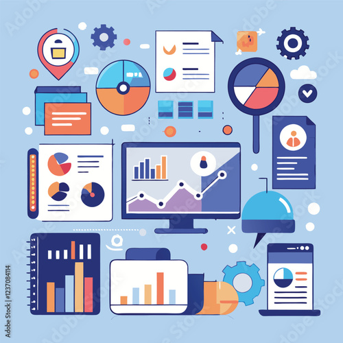 Vector set of Success and Management concept banners. Linear chart, graph, schemes. Thin line flat design infographic elements, symbols and icons for web, marketing, printing.