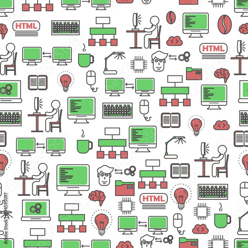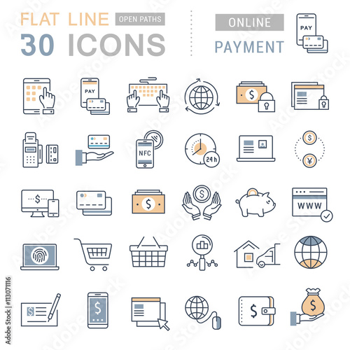Vector seamless pattern with online shopping, e-commerce, mobile payment symbols, design elements. Thin line art flat style design mobile banking background, wallpaper.