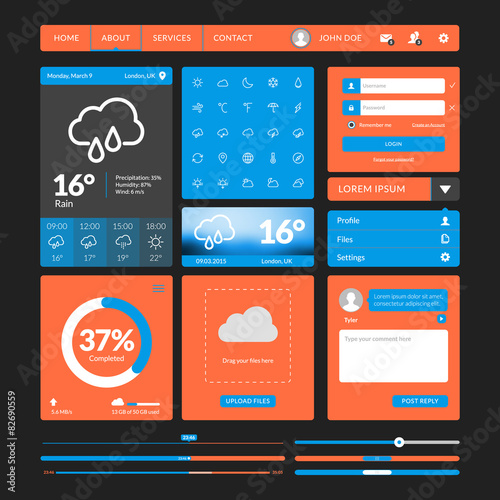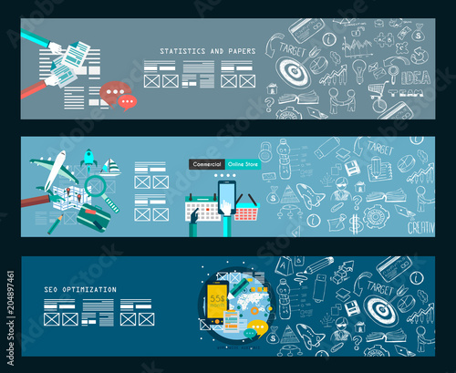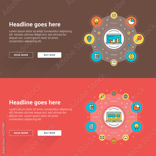 Vector web banner template set. Computer, Social networks, Mail concept thin line art flat style design elements.