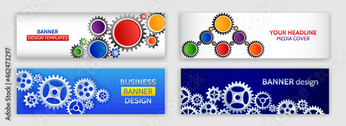 Vector web banner template set. Building, Repairs, Painting services concept thin line art flat style design elements.
