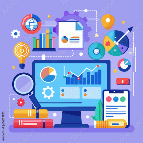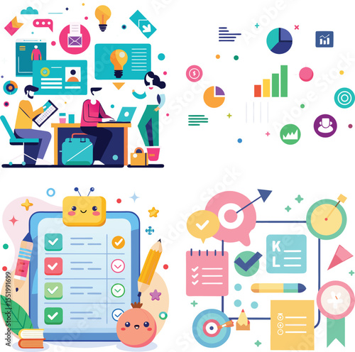 Business success poster banner template. Vector thin line art flat style design with office workers funny cartoon characters, business symbols, icons for website banners and printed materials.
