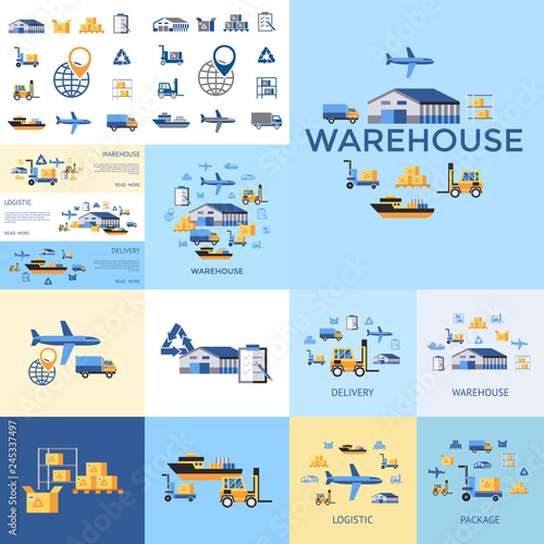 Travel agency or tourism website development template set. Vector modern thin line art flat style design elements with travel symbols, icons for website banners and printed materials.
