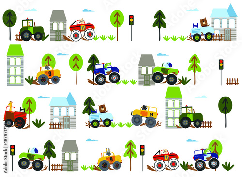 Vector tourist poster, banner set with travelers going hiking, camping, visiting zoo, passing ticket control and security checkpoint at airport terminal. Flat style design.