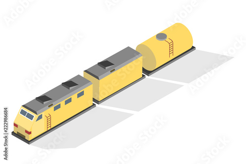 Vector train fairground or amusement park carnival attraction. Isometric circus or festival playground fun locomotive for children leisure isolated on white background