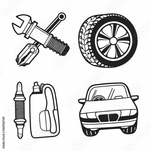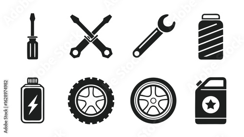 Vector set of vintage car service symbols, icons isolated on white background. Black templates for logos and print.