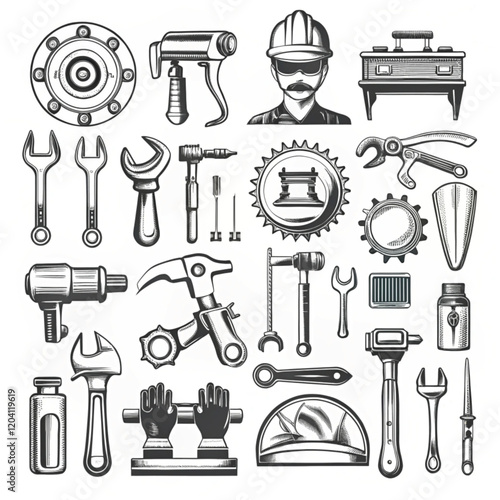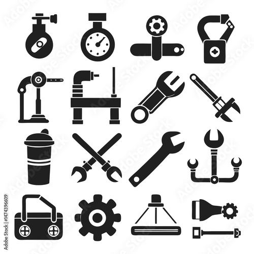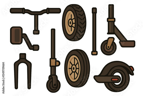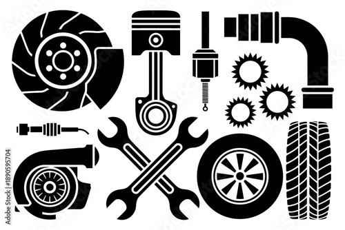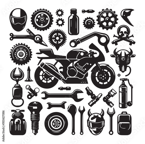 Vector set of vintage motorcycle symbols, icons isolated on white background. Black templates for logos and print.