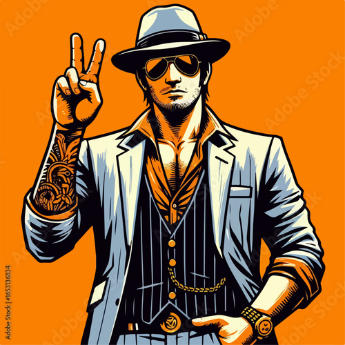 Vector illustration of man showing stop hand sign, stop gesture in retro pop art comic style.