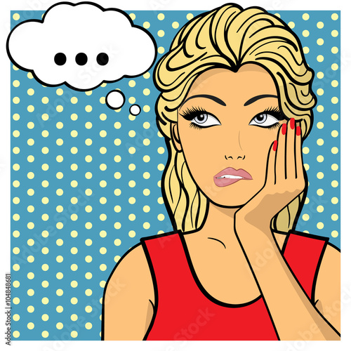 Vector illustration of young woman having toothache in retro pop art comic style.