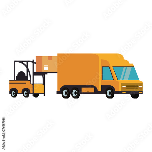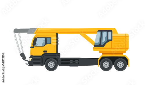 Web banner with construction machinery and sample text. Four trucks cargo container, crane, tipper and concrete mixer. Flat style vector illustration.