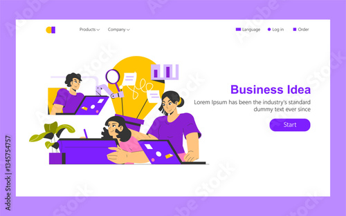 Vector web site design template. New product development, creatice idea. Team in office. Landing page concepts for website and mobile development. Modern flat illustration