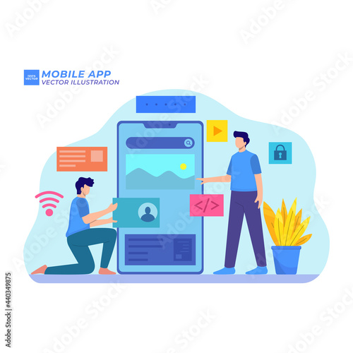 Vector web site design template. Social media and online messaging application, people chat. Landing page concepts for website mobile development. Modern flat illustration.