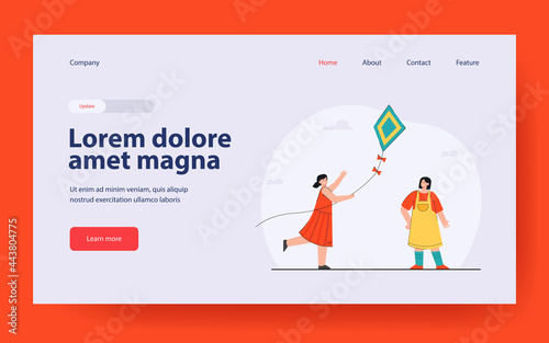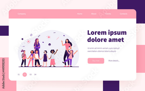 Vector web site gradient design template. Happy family walking in the rain in park. Fall season day. Landing page concepts for website and mobile development. Modern flat illustration