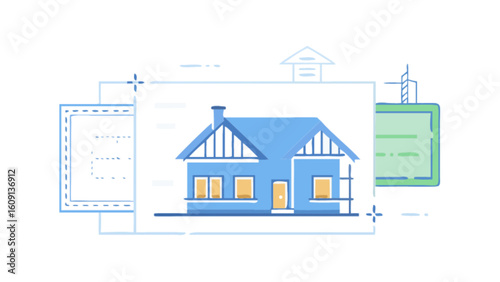 Vector web site linear art design template. House construction building plan and measuring. Landing page concepts for website and mobile development. Modern flat illustration