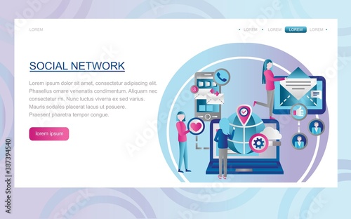 Vector web site linear art design template. Satellite global telecommunication system. Landing page concepts for website and mobile development.